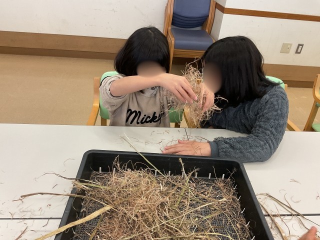 自分達が採ったケナフの木が小さく細かくされたものを見ました。