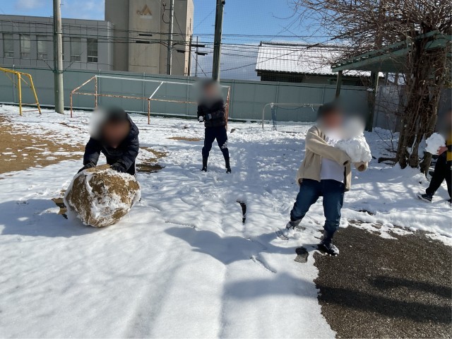 みんなで外に出て思い思いに雪に親しみました。