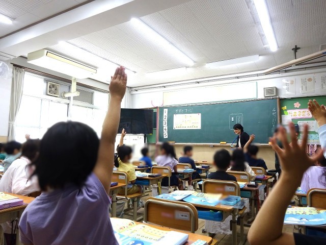 子どもたちは、少し緊張しながらも、先生の話をよく聞き、一生懸命学習に取り組んでいました。