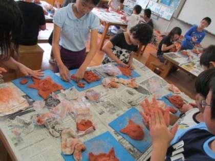 アイディアスケッチで考えたことを生かして,ねん土で作品作りをしました。