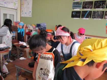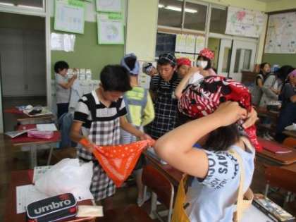 三角巾など困っている友だちを助け,協力して準備しました。