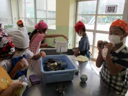 食器や調理器具は使用する前にきれいに洗います。