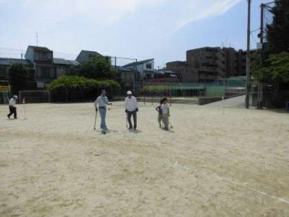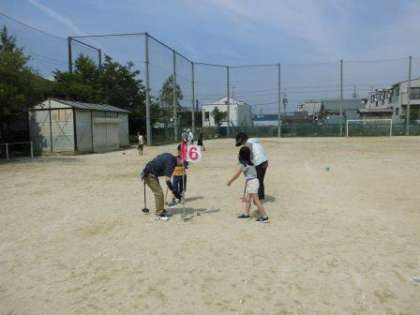 土曜日,午前より深草児童クラブ「グランドゴルフ」が行われました。3年生以上の児童9名がお世話になっています。楽しそうに活動しています。