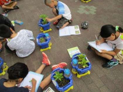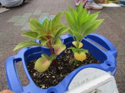 理科の時間に観察しているホウセンカがずいぶん大きくなってきました。「自分の定規よりながーい。」という人もいました。