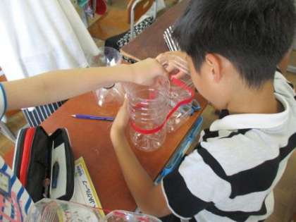 ペットボトルをつなぎ合わせて,My田んぼを作りました。
