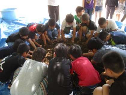 大量の土をしっかり混ぜ合わせるのは,なかなか根気のいる作業です。