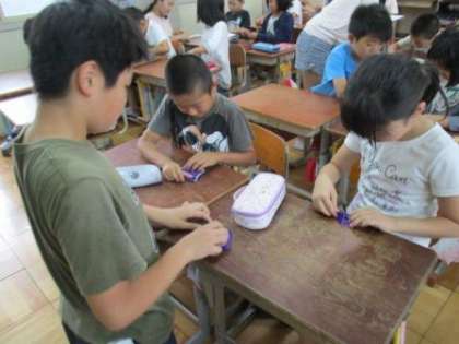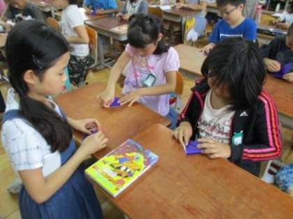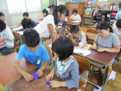 教室に6年生の人たちがやってきて,折り鶴の折り方を教えてくれました。修学旅行に千羽鶴を持っていくのだそうです。6年生の人たちは,優しく教えてくれました。