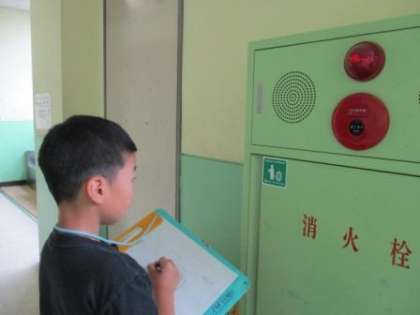 国語の時間に,身のまわりにある記号について調べ,報告書を書きます。今日は,校舎内にある記号をさがしました。