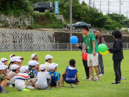 田島先生考案の風船リレーやじゃんけん列車で楽しんでいます。