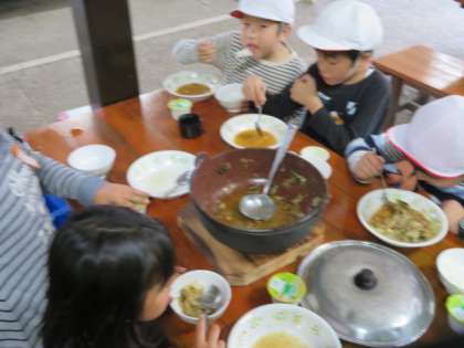 とても美味しかったようで、ほとんどの班がなべを全部平らげ、