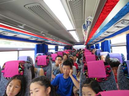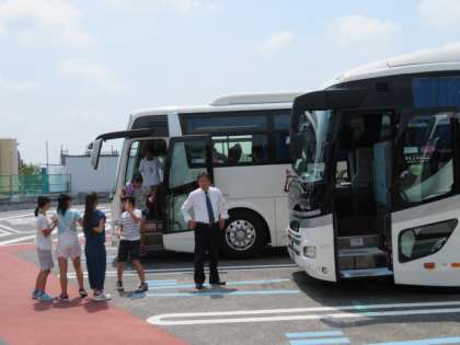 10時40分,山陽自動車道の福山サービスエリア(広島県福山市)に着きました。車内ではバスレクやDVD観賞をして楽しんでいます。しんどくなる児童もなく,全員元気です。