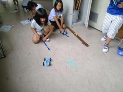 理科の時間に,ゴムの伸ばし方を変えると,ものの動き方は変わるかを実験しました。
