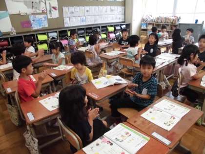 音楽の時間に,色んな曲でリズム打ちをしました。初めてカスタネットを使いました。子どもたちは歌いながら,上手にカスタネットでリズムを取っていました。これからも,色んな楽器に触れていってほしいと思います。