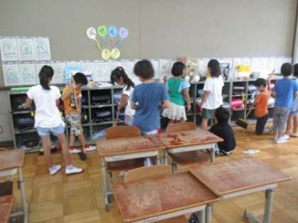 夏休みが終わり教室には子どもたちの元気な声がもどってきました。教室や廊下がきれいになるように掃除をがんばっています。すみずみまできれいに掃除しています。