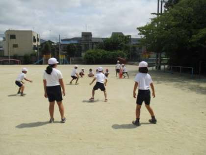 体育でハンドベースボールが始まりました。3塁のベースをふめたら1点入ります。点の取り合いですが,少しでも多くアウトをとれば勝てます。