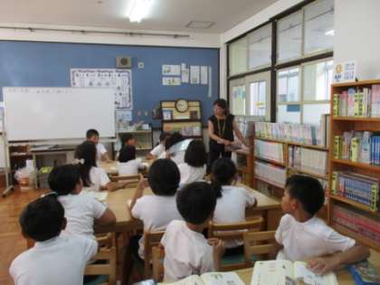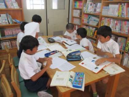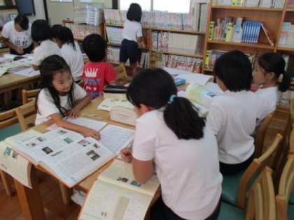 国語の時間に図書室で本を使って調べる学習をしています。1日(金)には,学校司書の先生に百科事典の使い方を教えてもらいました。