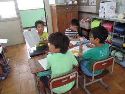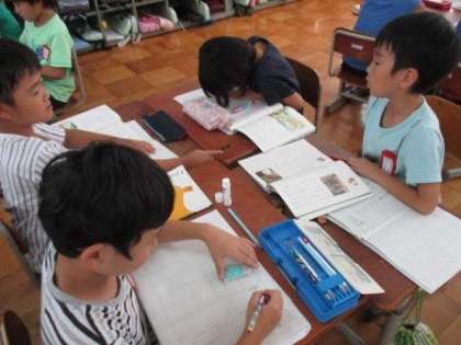 獣医さんの仕事について,時間的順序と仕事内容を振り返りながら表にまとめました。グループで確かめながら学習を進めました。