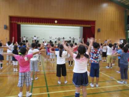 運動会の全校ストレッチの練習が,体育館でありました。みんな楽しく準備運動ができそうです。