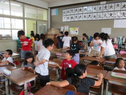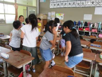 クラスでみんなのリクエスト「進化ジャンケン」をしました。アリ→ウサギ→ゴリラ→人間と進化するそうです。人間になっても負けたらいっきにアリに戻らなければならないというちょっとビックリするルールです。