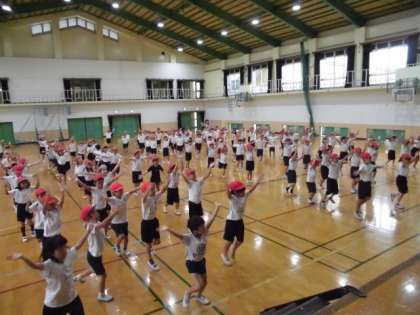 1年生は,学年競技で玉入れをします。玉入れをする前に,曲に合わせてダンスを踊ります。しっかり手を伸ばしたり,元気よくジャンプをしたり,毎日一生懸命練習しています。運動会に向けて,これからも頑張っていってほしいと思います。