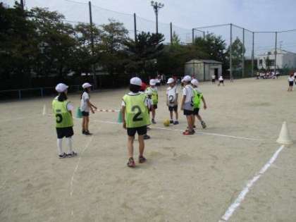 体育の学習では,ボールけりゲームをしました。自分がゴールするだけでなく,味方に積極的にパスをしていました。作戦タイムでは,どうすれば点数につながるか話し合っていました。