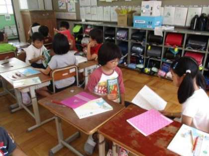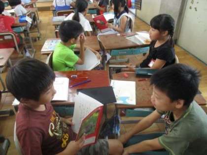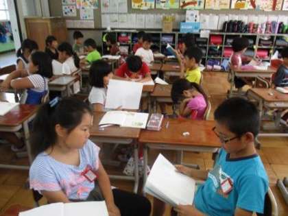 今日は,がまくんとかえるくんの2人が,長いことお手紙を待っていた理由について考えました。自分の考えをノートに書いた後,ペアで交流しました。