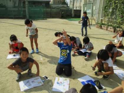 理科の時間に太陽の動きとかげのうごきを確かめました。遮光板で太陽を見たり,時間を決めて,かげの向きを確認したりしました。