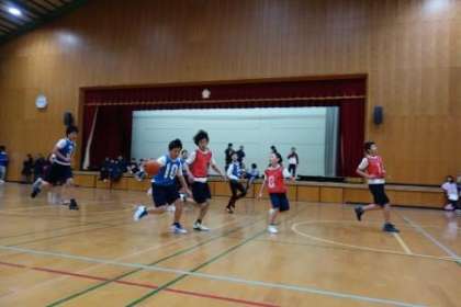 バスケットボールの男子チーム。1試合目は、一人一人が余裕をもってプレーし、点もしっかり決めることができて、勝つことができました。