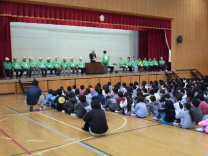 3月6日(火)の1時間目に体育館で「安心・安全感謝の集い」が行われました。安心安全ボランティアの方々には,毎日,暑い日・寒い日・雨の日・雪の日も,どんな悪天候の日でも登下校時に子どもたちの安全を見守ってもらい,本当に感謝の気持ちでいっぱいです。ありがとうございます。