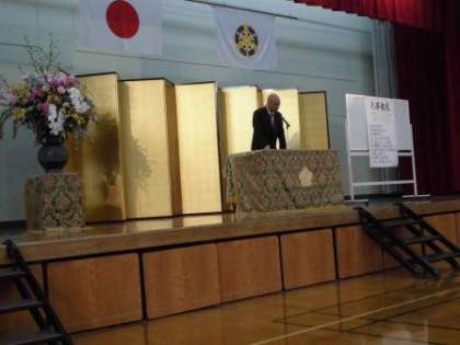 さあ,新しい1年の始まりです!校長先生から今年のスローガン「失敗をたくさんしよう」「面倒なことを進んでしよう!」のお話と,「凡事徹底」についてのお話がありました。みんなでがんばってチャレンジしていきましょう!