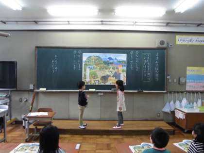 絵を見ながら友達と丁寧な言葉で話す学習をしました。休み時間に使う言葉と,学習の時に使う言葉の違いに気づき,話すことができていました。国語の時間だけでなく他の学習にもいかしていきます。