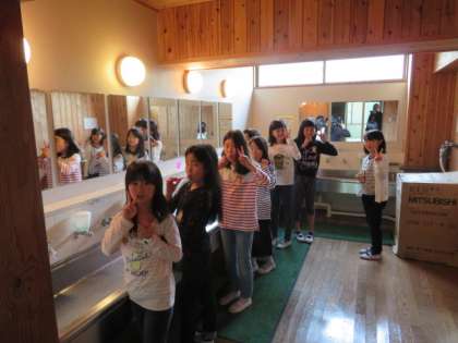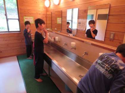山の家2日目の朝をむかえました。お天気もよく,気温は18度と爽やかな朝です。児童は6時起床です。