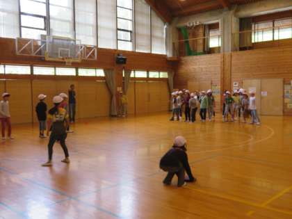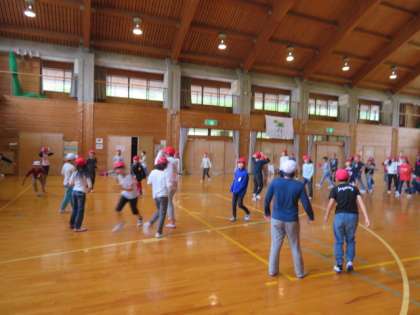 それぞれのクラスで、レクリエーションを楽しみました。1・2組はドッジビーを、3・4組は鬼ごっこです。