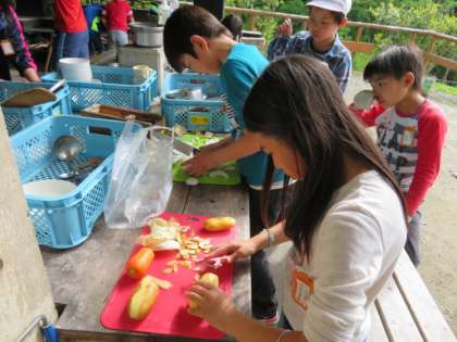 いよいよ野外炊事「カレーライスづくり」に挑戦です。協力してできるかな?