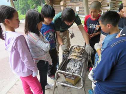5月17日(木)5年・長期宿泊学習 3日目「魚さばき〜炭火でこんがり〜」