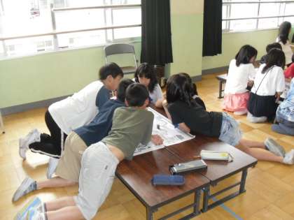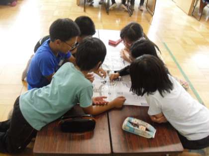 こちらは遣唐使船スゴロク体験。みんな日本から唐まで行き,無事に日本に帰国できたかな?