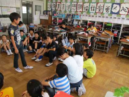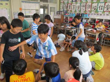円陣を組んで「何が始まるの?」と思っていたら,「なんでもバスケット大会」でした。皆で和気あいあいと,大盛り上がりで楽しみました。晴れの日でも,室内遊び・・・・・いいもんですね。