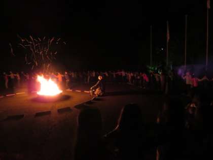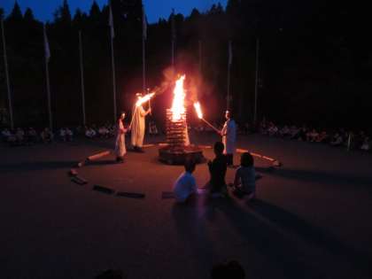 花背の最後の夜はキャンプファイヤーです。火の神様登場で、ファイヤーに火が付き、キレク係りの進行で、楽しいゲームやダンスで楽しみました。最後の夜は最高に盛り上がりました。