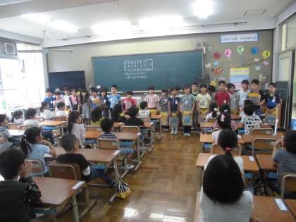 生活科で2年生と学校探検をしました。最後には朝顔の種のプレゼントも!