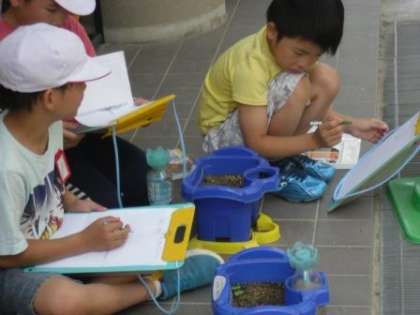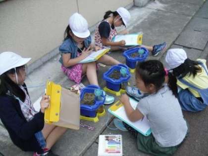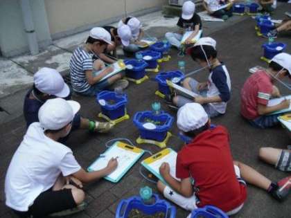 理科の時間にホウセンカの観察をしました。子葉が出始め,葉の形や色,大きさや葉の枚数などを丁寧に観察しました。
