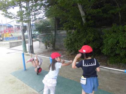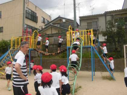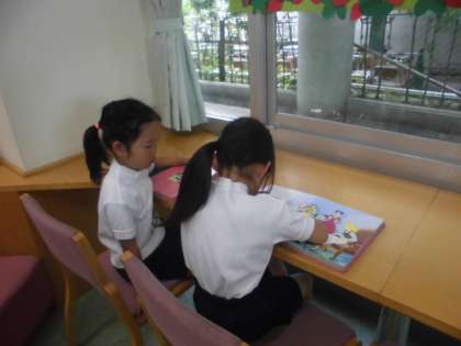 遊具で遊んだり,図書室で静かに本を読んだりなど,自由に過ごしています。遊具ではしばらく学びの先生に見守っていてもらいます。