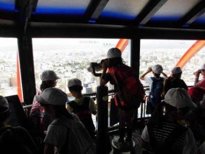 3年生は京都タワーの上から,京都市内を見下ろし,街の様子,方角による違いを調べに行きました。京阪・近鉄と乗り換え,エレベーターで展望台まで上がりました。そのあとは梅小路公園でお弁当をいただきました。