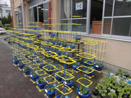 朝顔のつるが伸び始めてきそうなので支柱をたてました。
