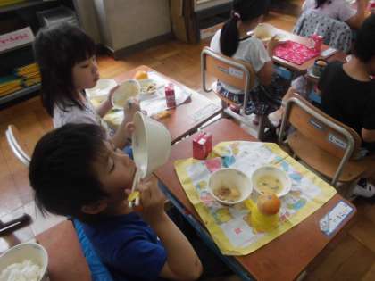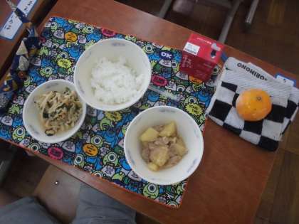 給食に「肉じゃが」が出ました。いつもとは少し違う味付けで,ピリッと辛目の味付けでした。ご飯が進みますね。
