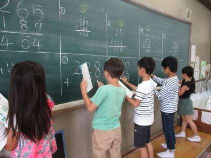 3けたの筆算がはじまりました。位をそろえて書くのをがんばっています。