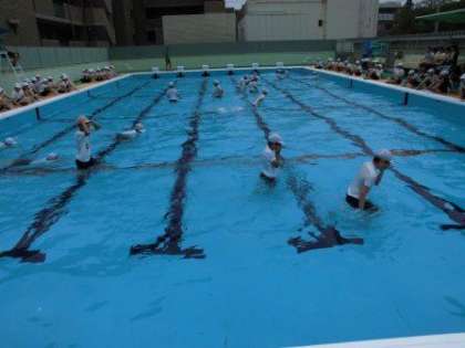 15日(金)の午後から,6年生が着衣水泳に取り組みました。衣服のまま水に入ると動くのにかなりの抵抗があるため,自由自在に体を動かすことがでず,重たく感じました。また,普段泳ぐことが得意な児童も「上手におよげへん!」と言っていました。貴重な体験になりましたね。