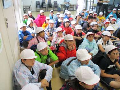 まずは,浄水場の説明をみんなで聞き,質疑応答もしていただきました。
