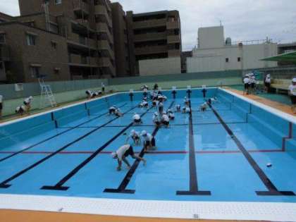 プール清掃がんばっています!