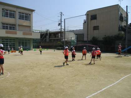 暑さに負けづに頑張ってきた「ポートボール」の学習も最終時間になりました。1時間目に比べると,動きがよくなり,声も出ていてパスがよく通るようになりました。5年生での「バスケットボール」につないでいきます。