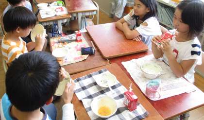 先週の金曜日,3年生と一緒に給食を食べる「交流給食」がありました。